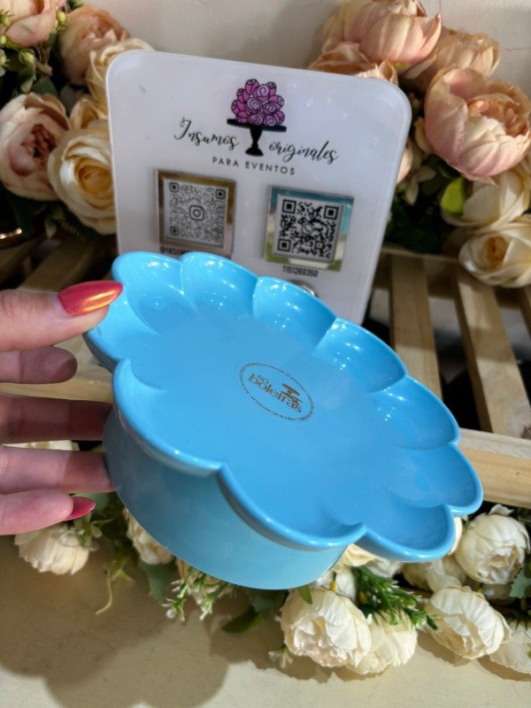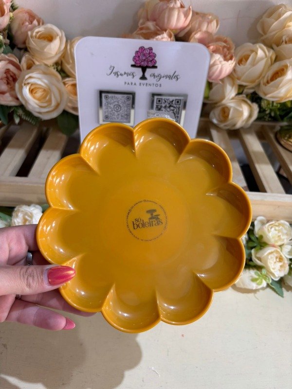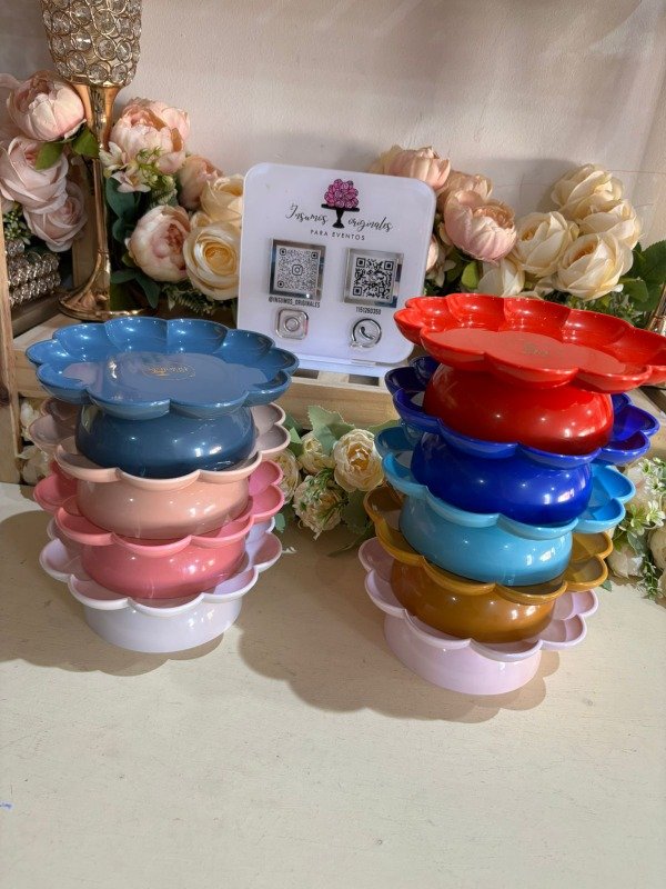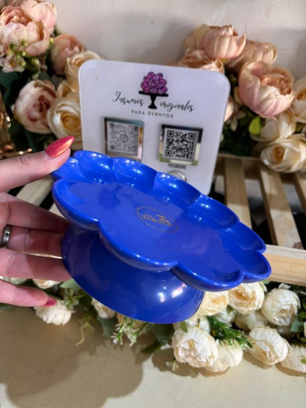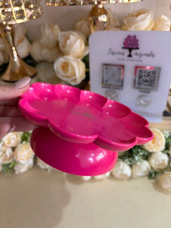Alzada en forma de flor . Mide 5cm de alto x 18cm de diámetro. Se desarma para usar como platito