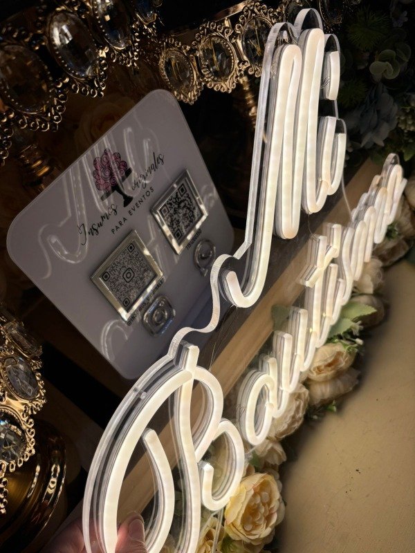 Cartel mi bautismo base acrílica de alta densidad . Luz cálida