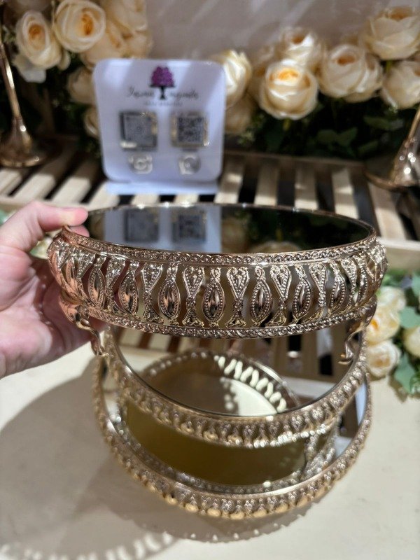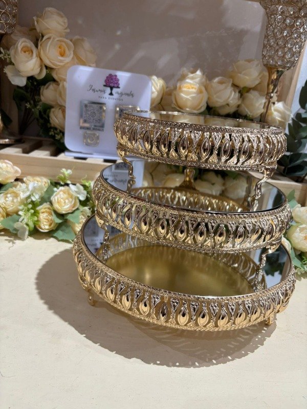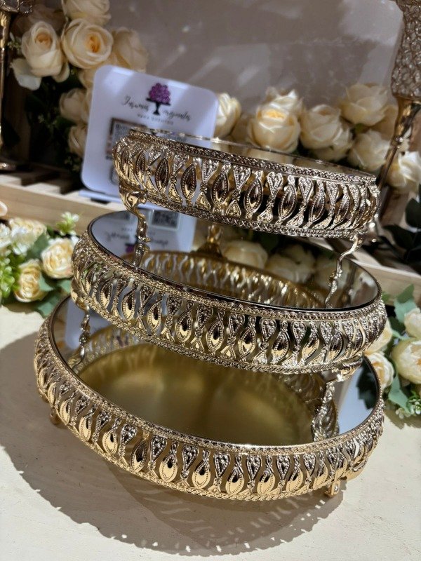 Trío premium de bandejas metálicas con plato espejado . Miden 20cm 25cm y 30cm de diámetro