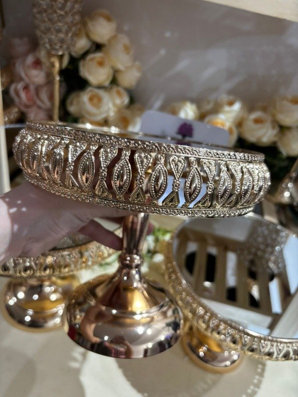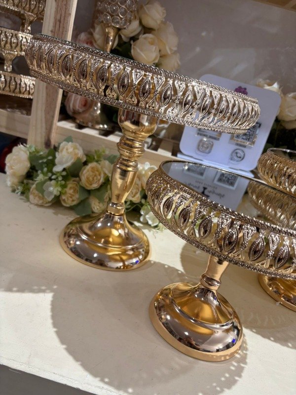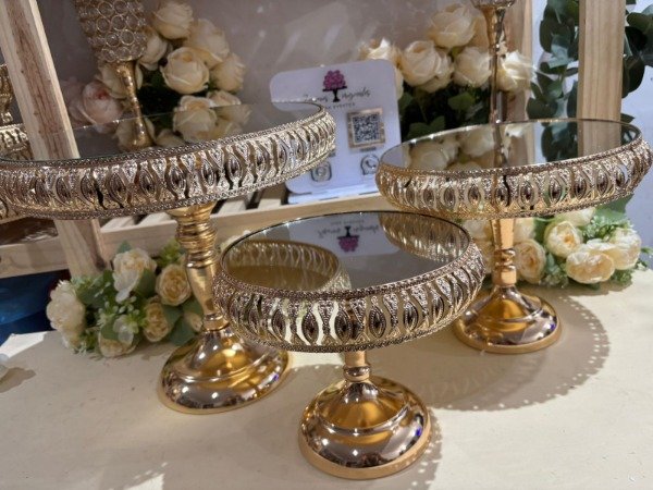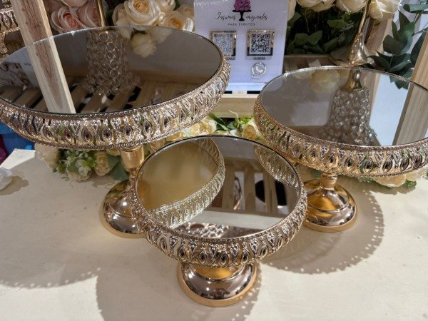 Trío metálico con platos espejados . Miden 20cm 25cm y 30cm de diámetro